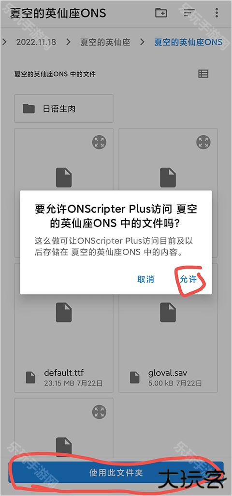 3、找到解压好的游戏文件夹,点击使用此文件夹,点允许;