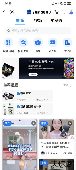 3、在发现中有各种智能设备推荐、视频以及买家秀。