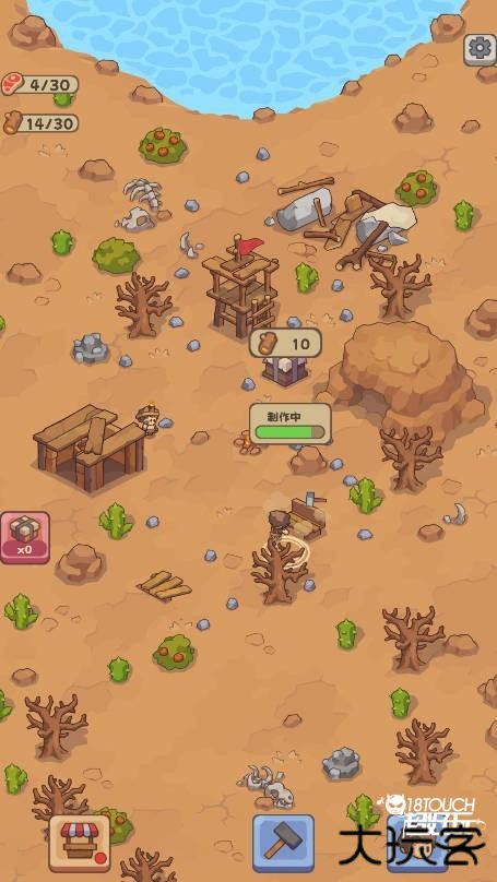 4、解锁新的地方,创建工具,收集建设资源。