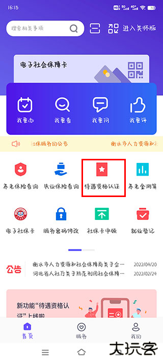 1、进入衡水人社页面后,点击“待遇资格认证”。