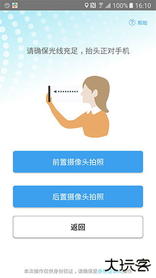 3、核对个人信息无误后,点击列表中“去认证”按钮,进入摄像头选择界面。