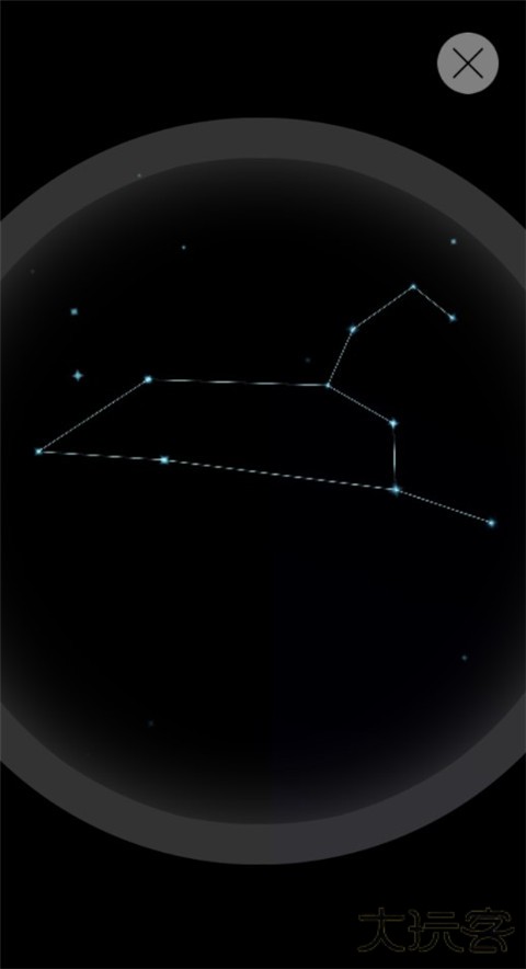 7、再次点击天文望远镜,进入望远镜的画面,拖动画面观看星空,星空出现星座,记住星座的形状。(进入望远镜的画面后,在此画面停留2分钟以上,可以获得“Stargazer”成就)