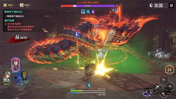 还可以体验规模巨大的地下城组团战、与boss的对抗,