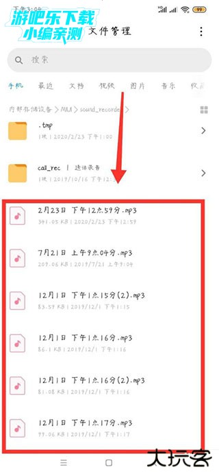 4、之后我们就可以看见我们所保存过的录音文件了啊