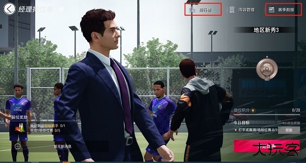 1、 在大厅进入「经理排位赛」2、 玩家可在「经理排位赛」界面通过「排行榜」和「赛季数据」查看当前的全服排名情况以及自己的比赛数据详情。