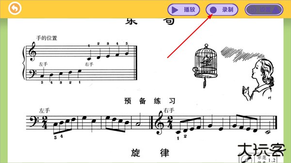 4、打开曲目,可看到曲目五线谱,点击右侧上方录制,用户可录制练习曲目。
