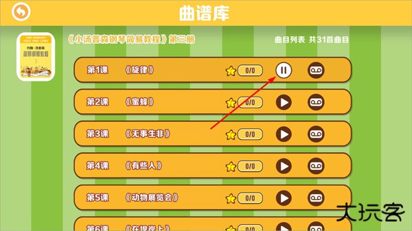 3、下载后点击进入曲谱主页,可以看到曲目列表共多少首曲目,点击曲目右侧播放按钮即可播放;