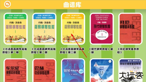 2、曲谱库里有简易钢琴教程、现代钢琴教程、钢琴基本教程、钢琴考级曲目等,选择需要学习的下载;