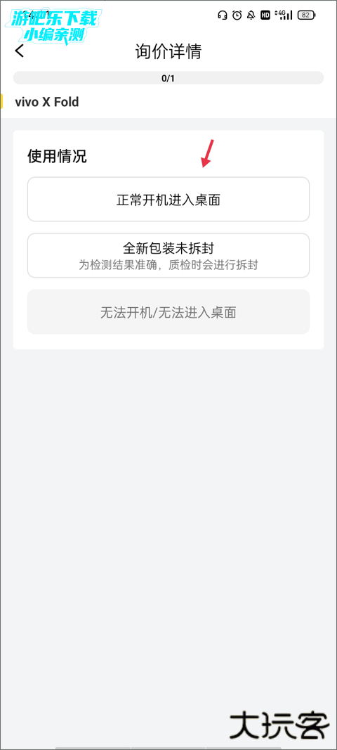 4、接下来就是进入到手机估价阶段,你需要根据手机来选择你手机的使用情况,目前暂不支持“无法开机/无法进入桌面”这类手机。