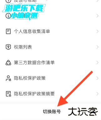 向下滑动屏幕,点击「切换账号」选项。
