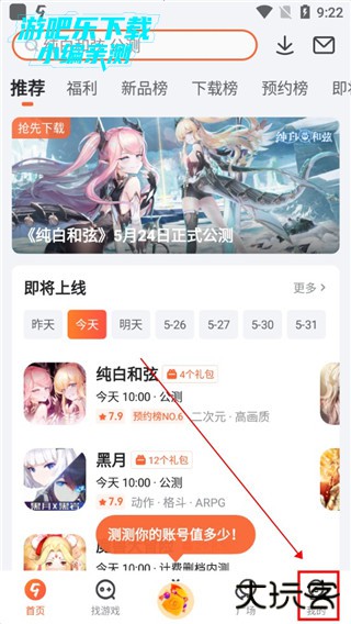 下载进入九游app,点击找游戏