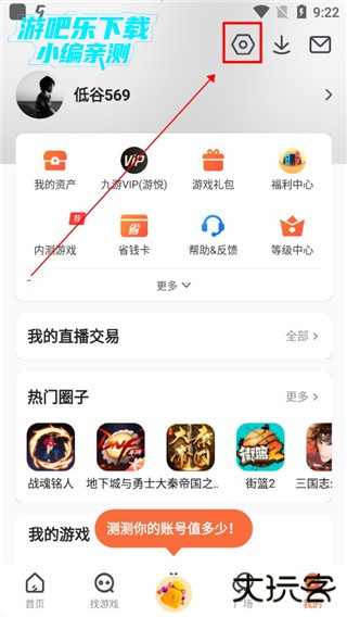 下载进入九游app,点击我的