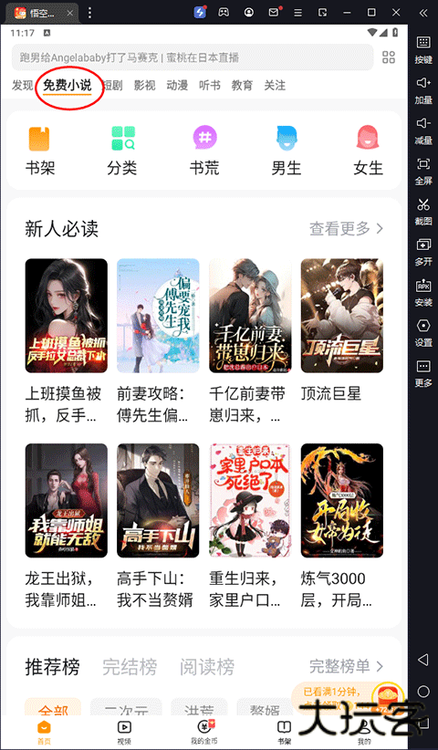 1、首先选择免费小说栏目,然后选择想要观看的小说