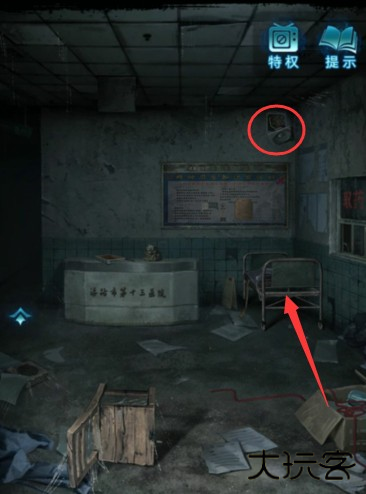 13、前往保管柜处,用钥匙打开57号柜子,获得【照片】,走到走廊左侧的房门前,将【照片】贴在窗子上与内部空遗照对应的位置,然后把道具移动到箭头提示对应的位置就可以打开门了