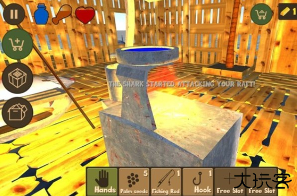 3.保证死不了后造把长矛,初期鲨鱼啃木板很伤,尤其怕咬到放物品的木板(如果运气好木桶多可以先造长矛)