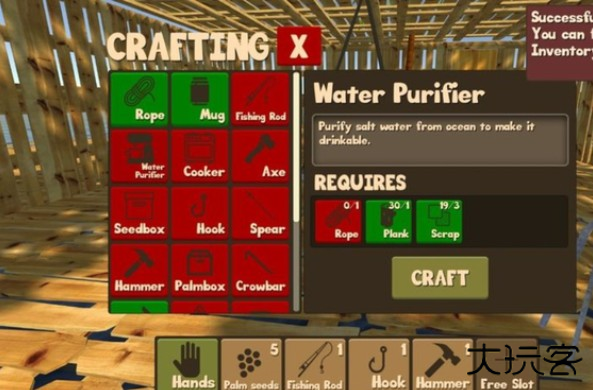 3、接下来需要制作蒸馏台,需要绳子、木板和碎片。