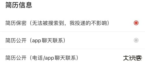 首先当然是打开软件,然后我们可以看到最下面的一行有一个【我的】,然后这个时候我们可以看到【隐私设置】,点击进入之后,你们就可以看到【简历信息】分别有【简历保密(无法被搜索到,我投递的不受影响)】、【简历公开(app聊天联系)】、【简历公开(电话/app聊天联系)】。你们如果想要删除的话,就选择保密就好了!