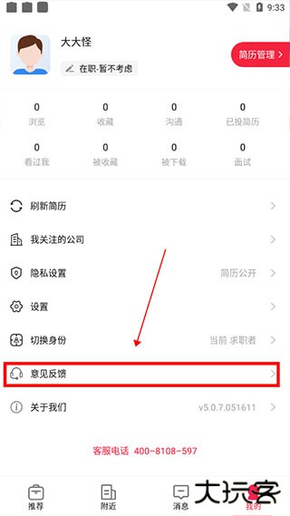 首先我们需要打开597直聘官方版,我们的简历如果创建好了之后,其实我们是不可以直接去删除我们自己的简历的,但是我们可以的就是让我们的简历不要被公司看到,这样也算是变相将我们自己的简历删除掉了,那么如果想要隐藏我们的简历的话,我们要怎么做呢?