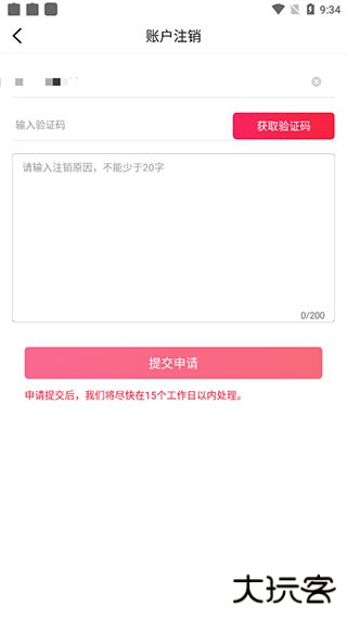 4、输入你的账号、验证码和原因即可进行申请注销,你也可以直接拨打客服电话进行注销;