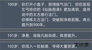 之后如果达到100岁即可触发事件,玩家获取仙脉图录,开启更加强大的修仙之旅。