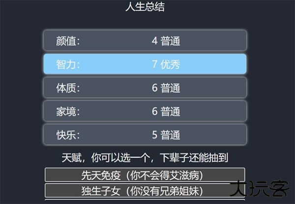 人生重开模拟器是一款非常有趣的竖屏文字剧情模拟手游,游戏中,玩家需要抽取初始的角色天赋,分配20点属性值,开启一段随机生成的人生旅程。游戏以剧情互动为核心玩法,玩家需要通过点击操作,推动剧情的发展,并在剧情中做出选择,解锁不同的支线剧情,同时在成长的过程中,玩家还会碰到各种各样的随机事件,每一个事件都对后续的结局有影响。快来人生重开模拟器体验不一样的人生吧!