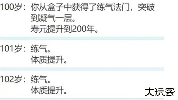 第三步:当玩家使用神秘小盒子进入修仙后,每个境界需要100年的寿命,然后就正常修仙吧。