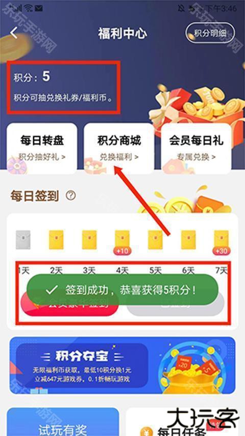 4、获得积分后,返回【福利中心】界面,选择“积分商城”选项,