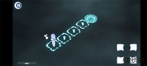4、通过右下角的按钮来控制人物进行移动,顺利到达终点即可。