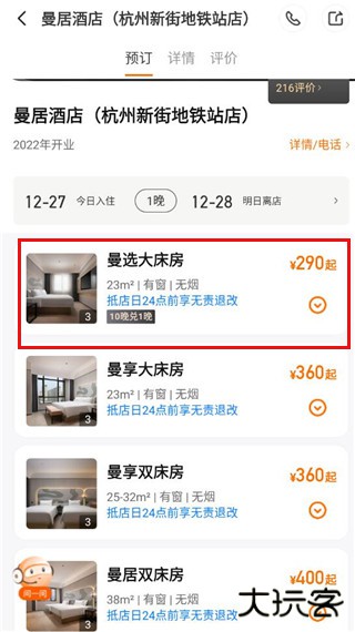 4、最后选择是大单间还是双人间点击预定即可