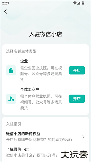 1、打开微信小店App可以看到微信小店入驻开通渠道。