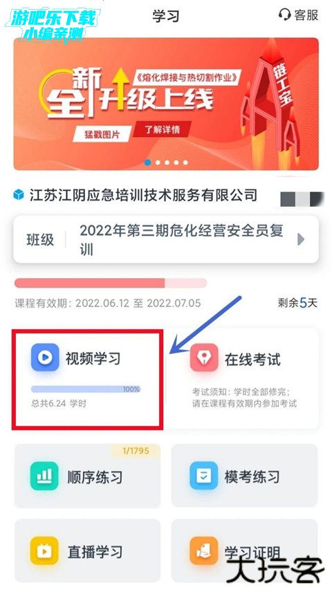 2、点击【视频学习】,根据进度条可查看自已完成学时数。