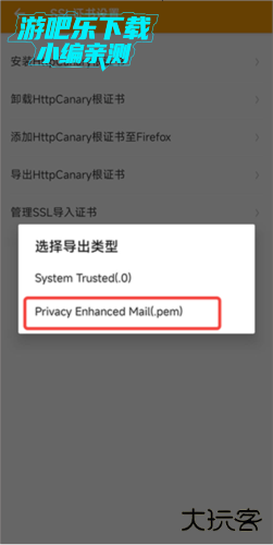 4、 导出类型选择下面这个(。pem)【我这里是未root环境,选择。pem。如果root之后需要更高要求可选.0】