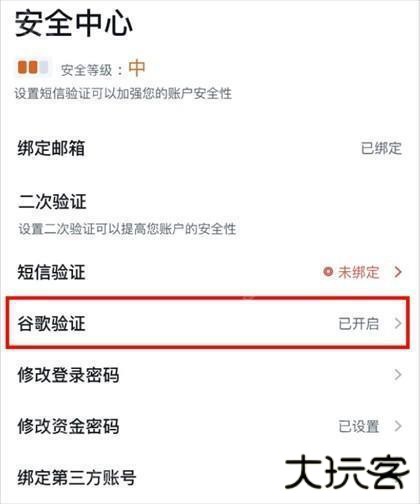 2、点击谷歌验证器,不要直接点击开启,否则退出后就要输入谷歌验证码。