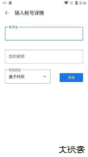 ①首先用户可以手动将密钥输入至谷歌身份验证器当中完成添加。