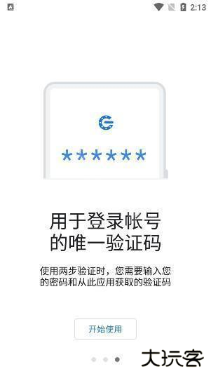 1、打开谷歌身份验证器app安卓手机最新版后点击【开始使用】。