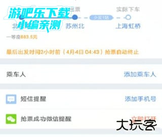 5、记得将短信开启,这样就不会错过漏下余票的通知,然后点按蓝字添上乘车人。