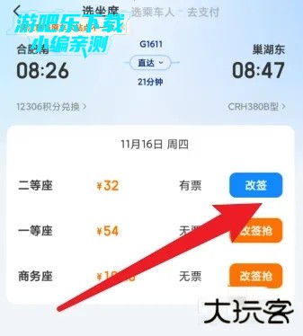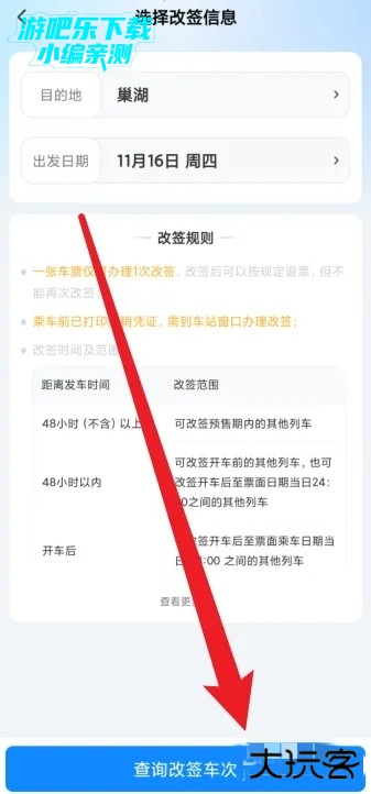 选择要改签的车牌,在车牌详情页面,点击改签按钮