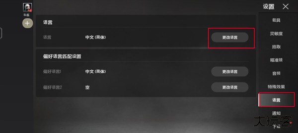 2、在右侧找到语言功能,点击更改语言;