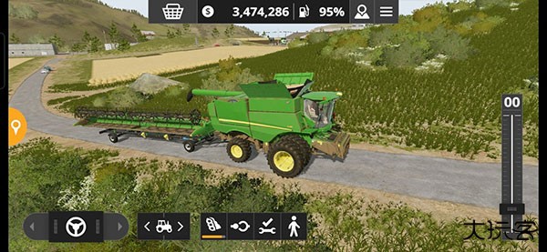 随着游戏往后推进,我们的收割机会越来越大,越来越宽,割台也越来越长,因为收割机要辗转于不同的农田收割,大家肯定会发现带着割台在路上行驶非常不方便,遇到狭窄路段腾挪起来很困难