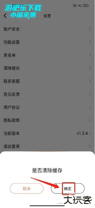 打开橘子视频app后,进入设置,点击(清除缓存)按钮。
