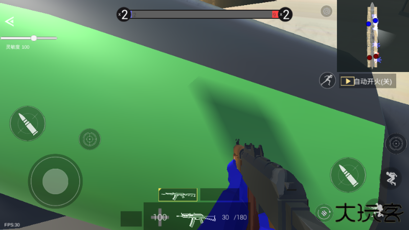 4、进入游戏后即可操作了,左边轮盘控制方向,右边轮盘可以控制开、趴下、蹲下等;