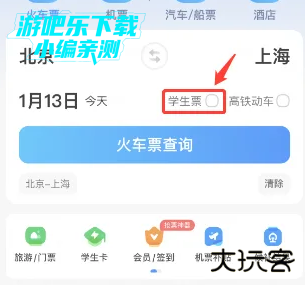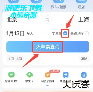 【学生票】选项被选中后,点击【火车票查询】按钮