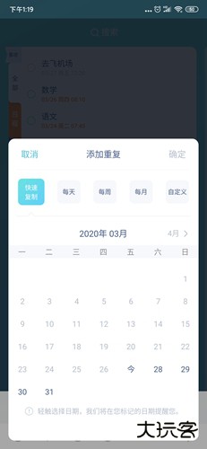 然后我们就可以进入到重复提醒的设置界面了,利用这个重复提醒即可帮助我们打卡。