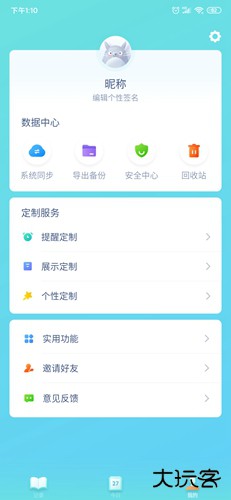 最后一个地方就是我们的个人界面了,这里我们可以备份我们的日常安排,以及使用一些比较好用的定制服务。