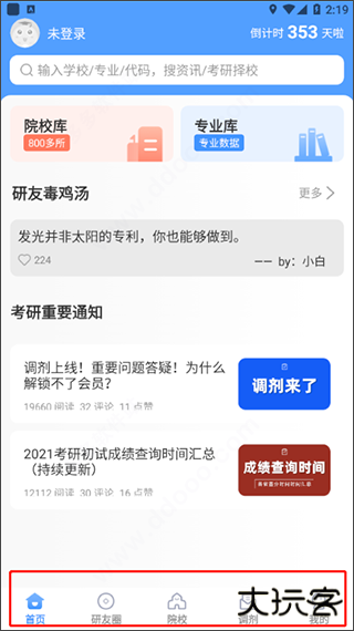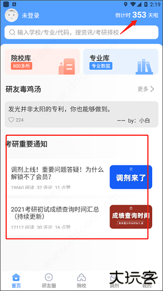 2、在主界面中主要为用户们提供了考研重要通知资讯和考研倒计时;