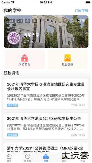 4、在院校模板中可根据自己的意愿选择学校查看院校资讯、简介、专业数据等内容;