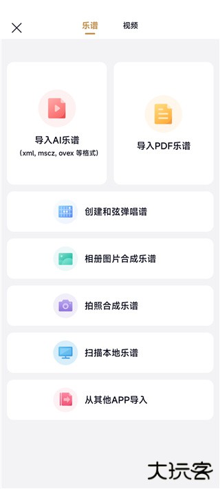 6、点击中间的加号,这里可以导入本地乐谱和练习视频;
