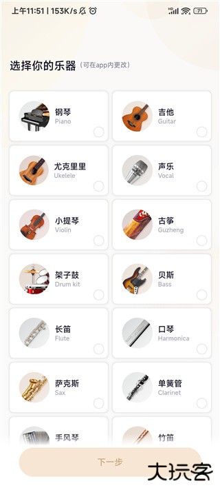 2、登录账号后选择你的乐器,后续也是可以在软件内更改的;
