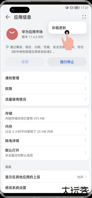 (2)在右上角三个点或四个点中点击卸载更新,将应用市场替换成出厂版本。
