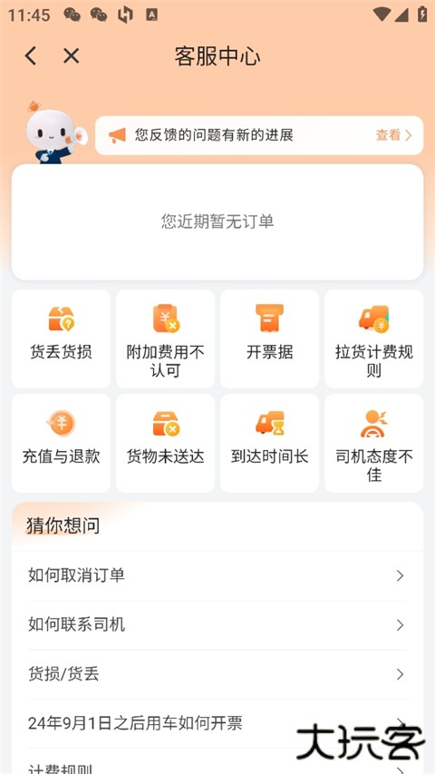 5、如果在用车时遇到一些棘手问题,可以点击我的板块里面的右上角的客服中心。